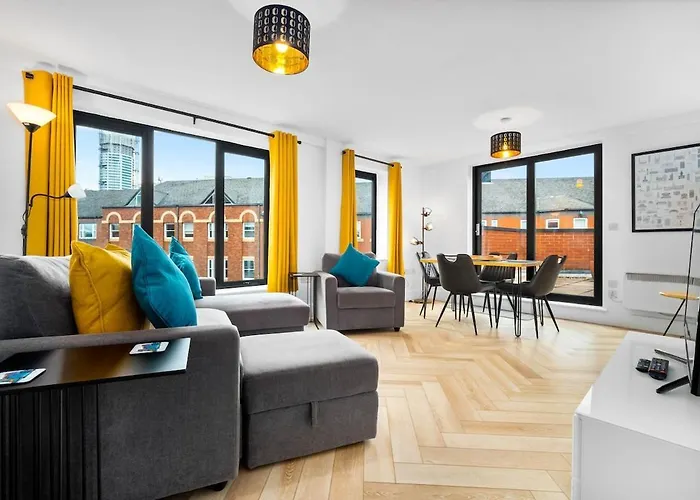 Cet appartement #116 Modern 2 Bed Near Utilita With Roof Terrace - 10 Mins From Bullring & Grand Central - Sleeps 6 - " Perfect For Contractor And Families - Free Parking" Birmingham est niché dans le quartier Convention, à 20 minutes de marche de la Église Saint-Martin. Les clients peuvent utiliser le Wi-Fi à des fins professionnelles et de loisirs.
